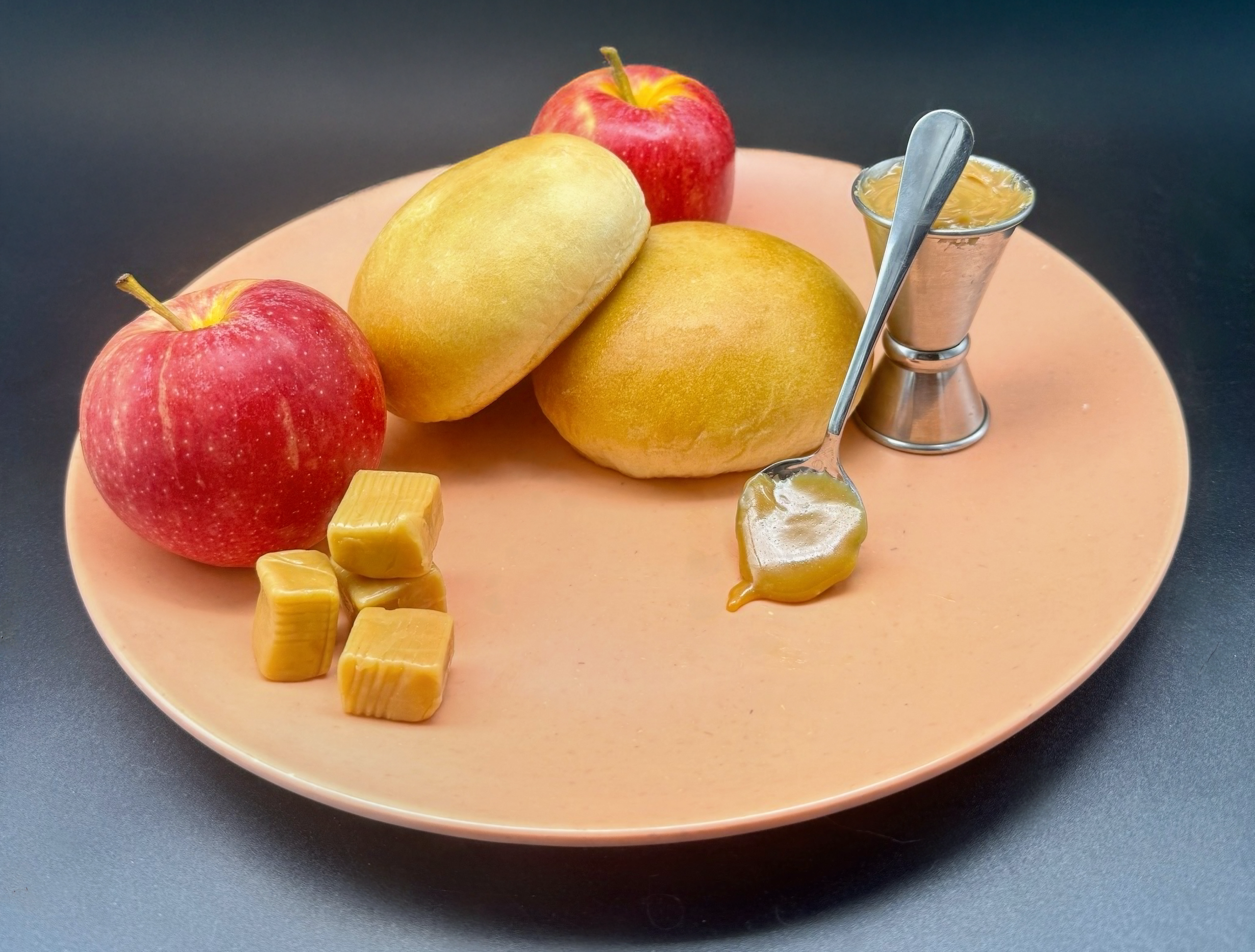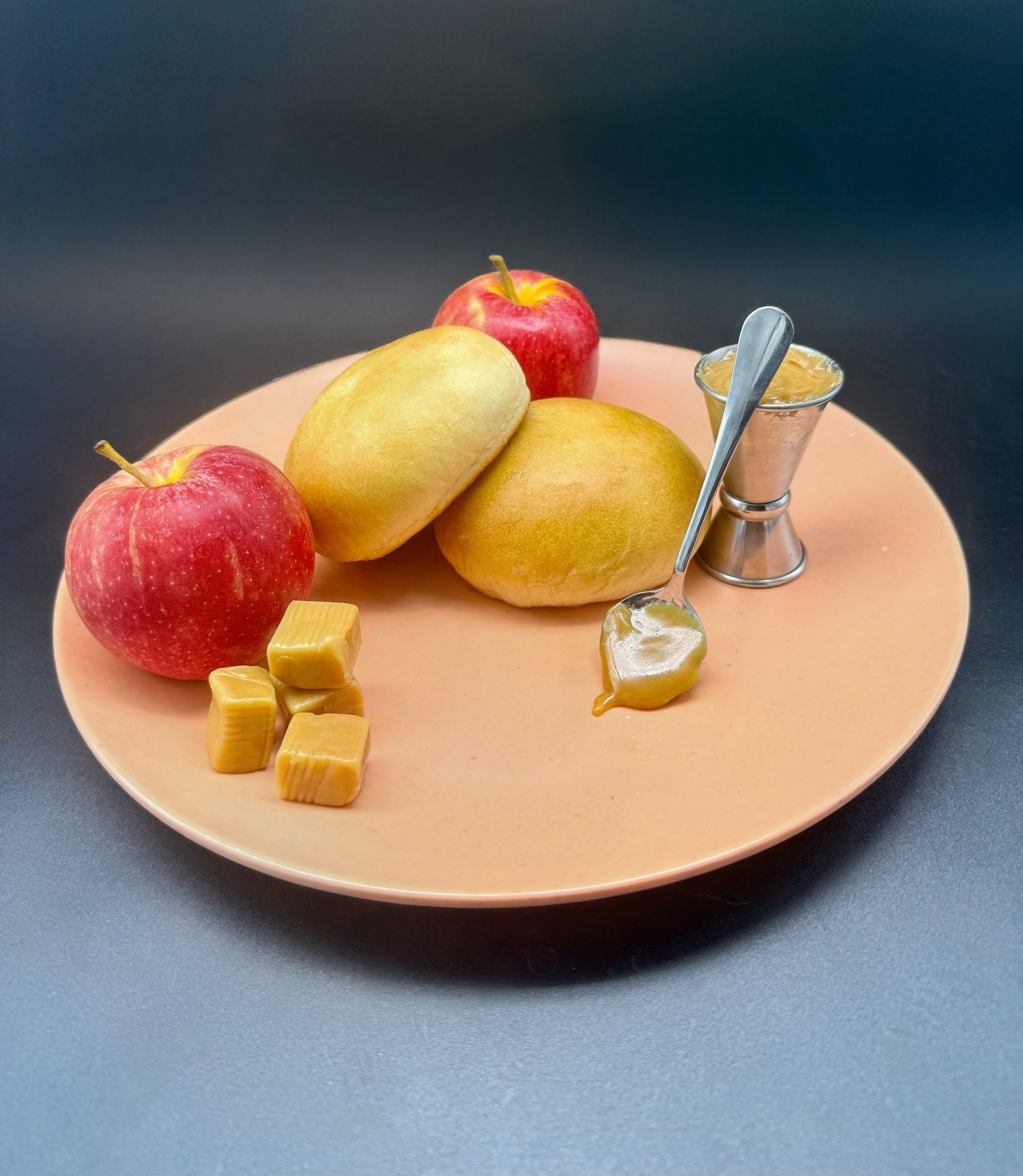 Soft milk bread buns with apple pie filling and caramel for a taste of autumn.